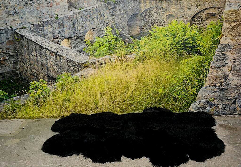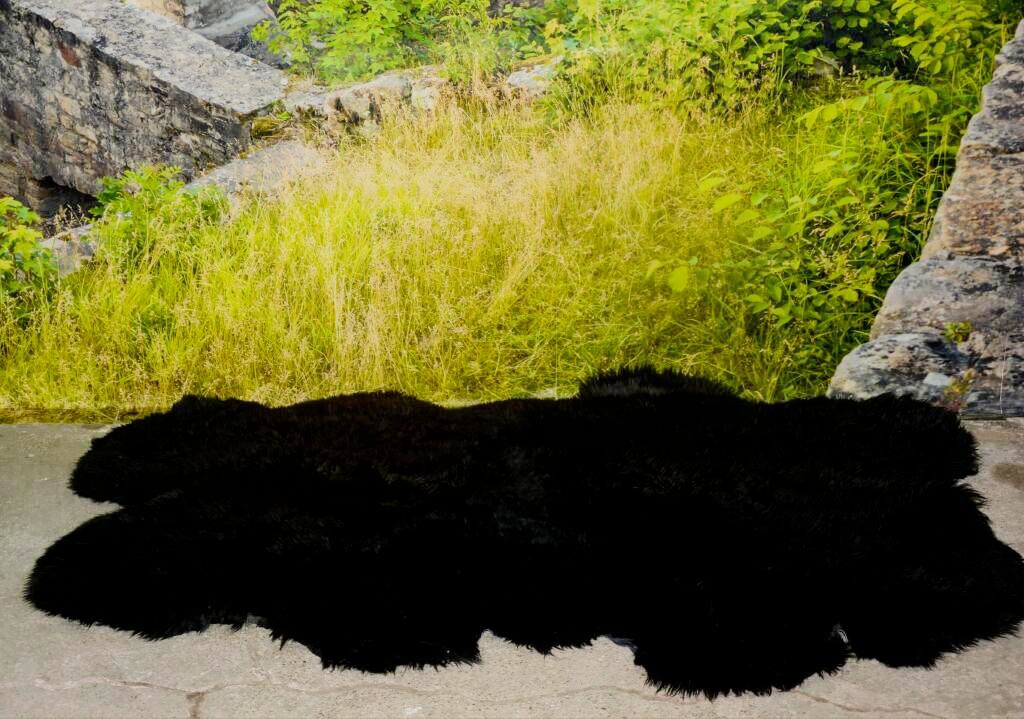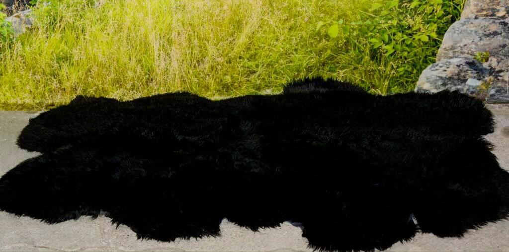 Echter Lammfell Teppich in Einfarbig SCHWARZ für Sie gefertigt aus 4 ganzen Lammfellen!